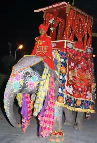 लग्नाच्या वरतीसाठी भाड्याने आणलेला सजवलेला हत्ती