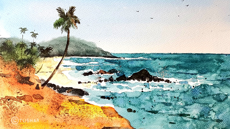 - सामान्यतः चित्रकार सुरुवातीला निसर्गचित्रं काढतो कारण ती छान दिसतात. मीही साधारण आठ वर्षांपूर्वी चित्रं काढायला सुरुवात केली तेव्हा सुरुवातीला निसर्गचित्रंच काढायचो. ज्यात एखादं लँडस्केप, एखादी झोपडी आणि इतरत्र हिरवळ असे. गोव्यातील समुद्रकिनाऱ्यांची चित्रं मी आधी काढली, मग नंतर तिथली मंदिरं, चर्चेस्, माणसं अशी चित्रं काढत गेलो. गोव्यात मासेमारी मोठ्या प्रमाणावर चालते. त्यासंदर्भात बरीच चित्रं आहेत. पुस्तकाची मांडणीही मी तशीच केली आहे. पेंटिंग्ज डेव्हलप करायला साधारण दोन-तीन महिने लागले. काही चित्रं मी जागेवर बसून काढली तर काही स्टुडिओमध्ये. विशेषतः अमूर्त शैलीतली काही चित्रं मी स्टुडिओमध्ये काढली. चित्र त्या जागेवर बसून काढा, नाही तर स्टुडिओमध्ये काढा; ती हवा अनुभवता आली पाहिजे.